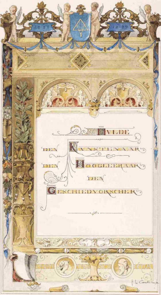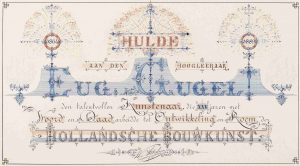 Album uit 1889 met werken van oud-leerlingen aangeboden aan de hoogleraar Eugen Heinrich Gugel (1832-1905) bij zijn 25-jarig jubileum als hoogleraar aan de Polytechnische School in Delft. Eugen Gugel was de eerste hoogleraar Bouwkunde. De prachtige resultaten van zijn studenten zijn te zien in dit ALBUM